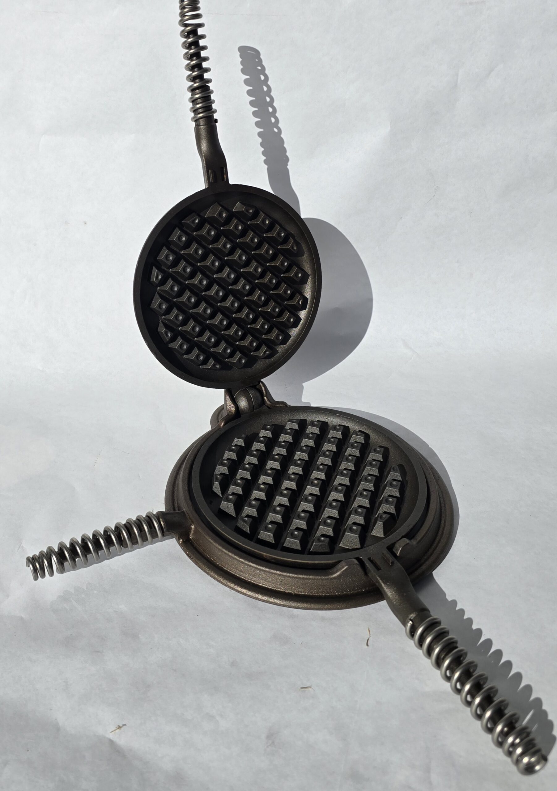 - Produced with more mass than traditional cast iron waffle makers to ensure that every waffle is cooked quickly and evenly, providing a beautiful release every time. There is more thermal mass, so the waffle iron has a shorter recovery time between waffles.